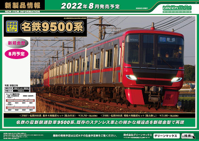 名鉄ファン待望の新型通勤車9500系が満を持してリリース決定!