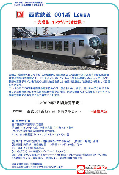Models IMON全店で、エンドウ製 西武001系【Laview】の予約を承っております。