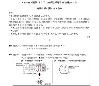 9月17日に発売いたしました品番6499 マルチレールクリーニングカー(45周年記念カラー)につきまして、付属品が未封入で出荷していることが判明いたしました。