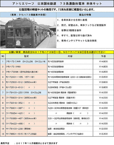クモハ73・モハ72・クハ79・サハ78の4種、計18タイプが