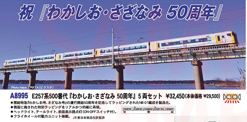 E257系500番代【わかしお・さざなみ50周年記念ラッピング】です。