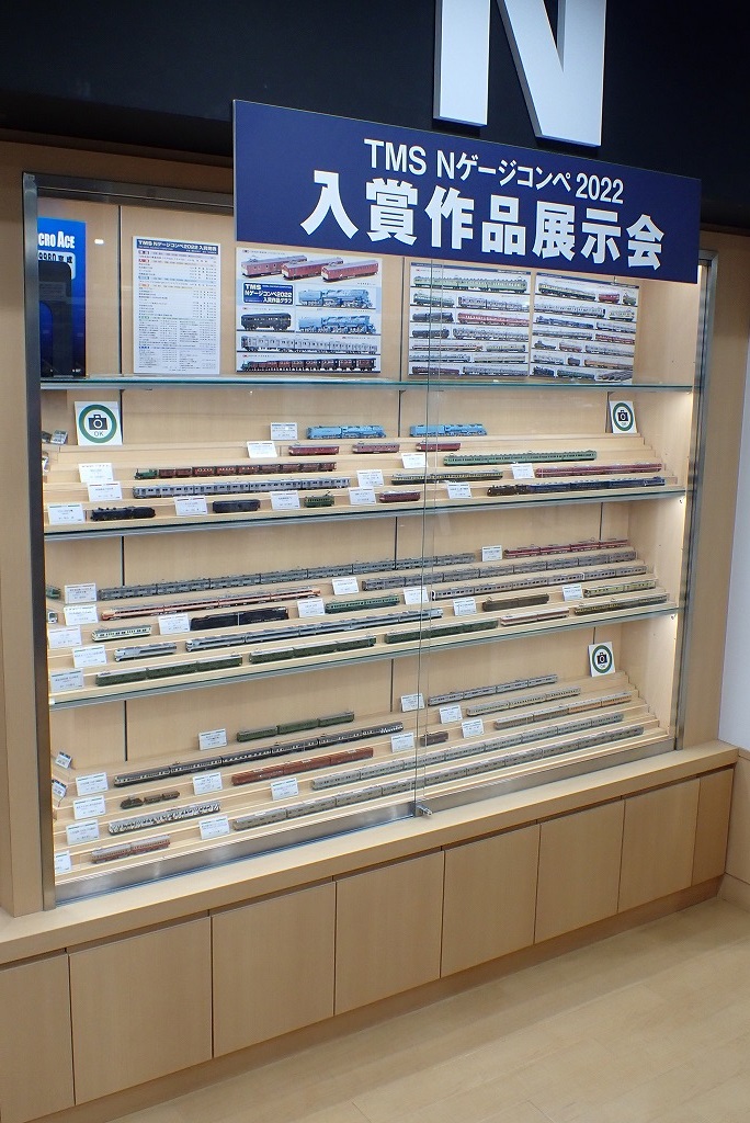 これまでにないハイレベルなコンペとなったTMS Nゲージコンペ2022の準佳作以上の入賞作品を今回も渋谷店の特設ブースにて展示が行われています。