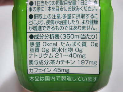 成分分析表(←この文面も違う。特保だから?)によると197mg/350mlです。