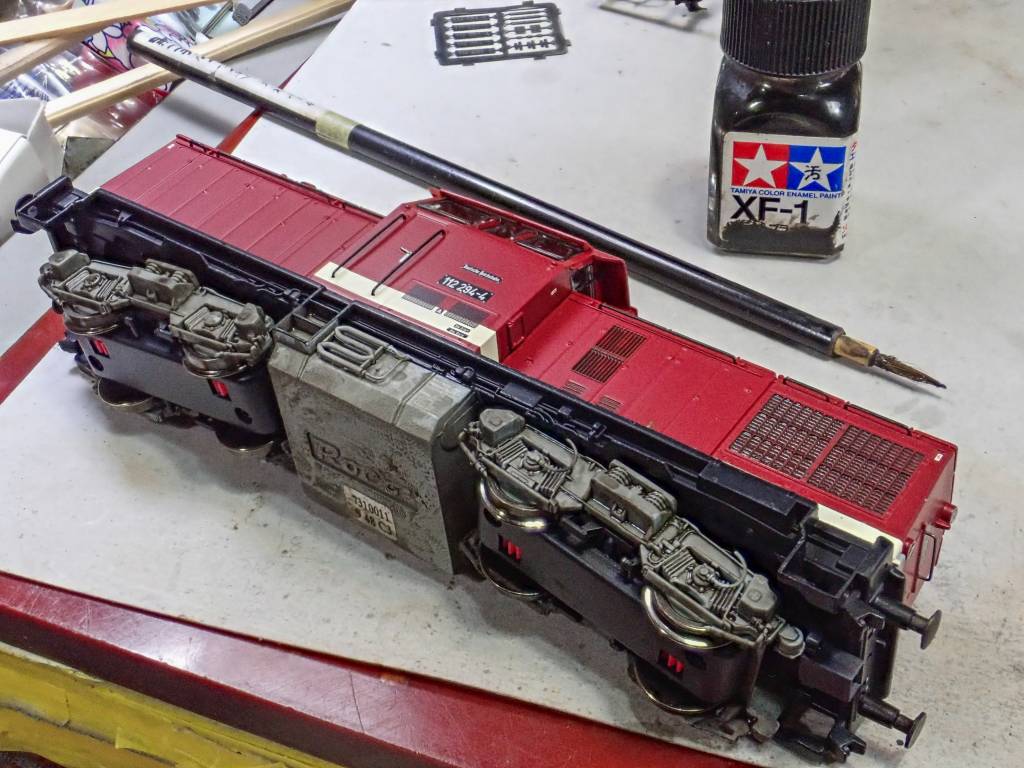 どうなるか分かりませんが色の濃い車体に濃い汚れ色から墨入れしていきます。