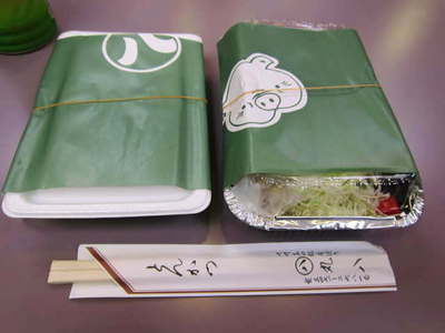 皆でお弁当を頂きました。 大井町本社前の老舗とんかつ屋“丸八”のお弁当です。
