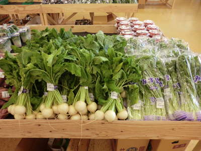 地元野菜の売場は凄い迫力です。