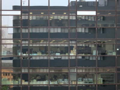 報告会会場から井門明治安田生命ビルを見ます。