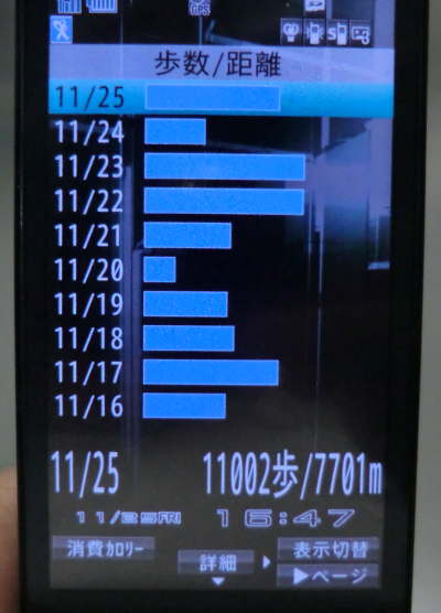 22,23日は四国の山林、17日の11000歩は仙台でした。
