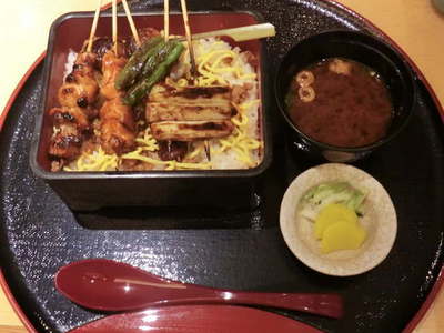 焼鳥重です。 錦糸卵が少し有って宜しかったですが、焼鳥に火を入れすぎです。