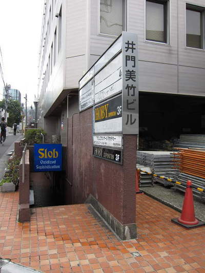 ビルテナント一覧看板と地下への入口。
