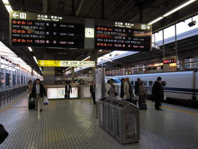新幹線で帰京します。 殆どの電車が【のぞみ】ですね。