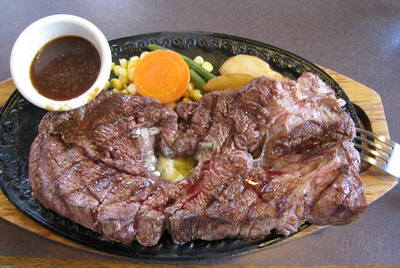 こんなモノを頂いてしまいました。1ポンド(460g)ステーキ¥2,280です。(ご飯オカワリ自由!)