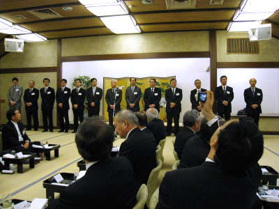 銀行役員が整列して紹介を受けます。