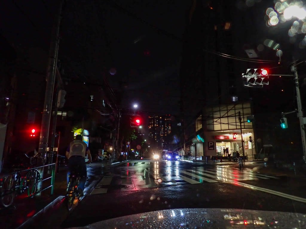 帰りは雨です。 自転車は赤でもGo!
