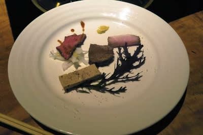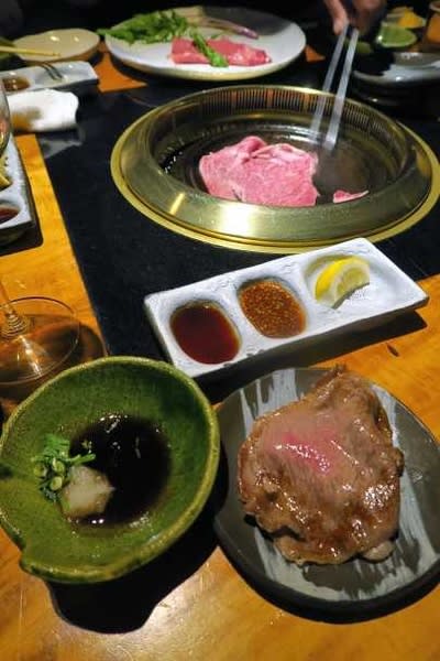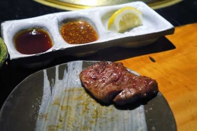 牛タンの超薄切りで野菜を巻いて頂く前菜です。