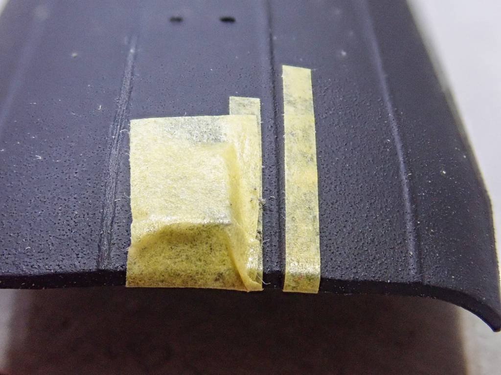 サンドペーパーで削り、マスキングを剥がす時、残った糊は爪楊枝で丁寧に剥がし取っていきます。