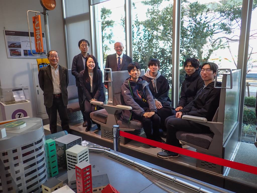 藤田吾郎教授と見学に同行してくれた芝浦工大鉄道研究会の学生さん4名。