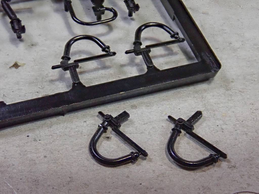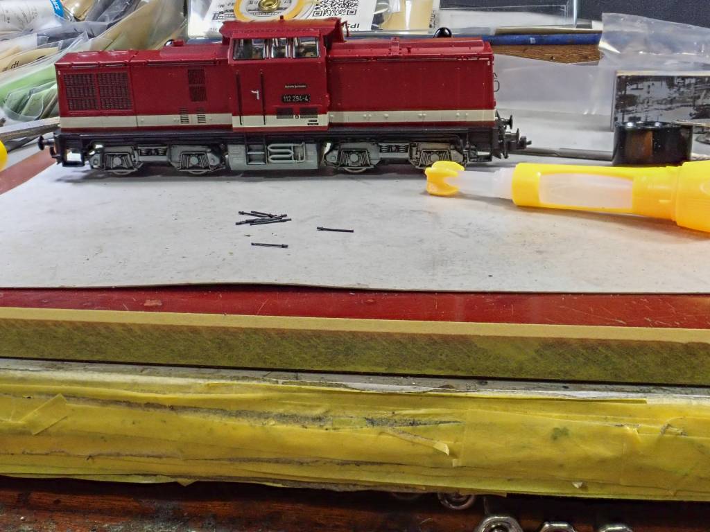 理想を言えば、ダイキャストのランボードに穴を貫通させておいて金属の挽物を嵌める他ないですが、ポリ製の手摺を浅い穴に挿すだけです。