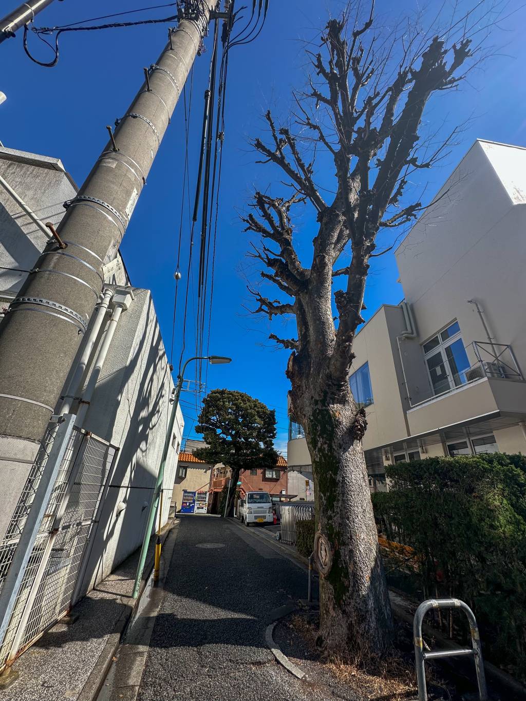 工房への車の通り道、将来木が少しでも太ったら塞がられるかもしれません。