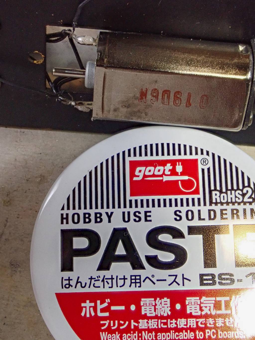 工作の時間です。 鉄道模型専用モーター「1527」とそのモーターホルダー。
