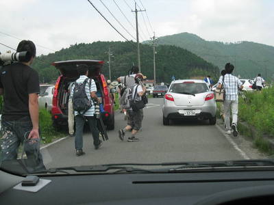 汽車の去ったあと、車に戻る鉄チャンたち。
