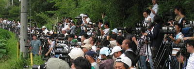 初めて見る大山路での「激パ」を映像に記録するため、細い道の両側にそれぞれ幾重にも重なった「鉄」の群の間をデカビデオを担いで撮影しながら通過しました。