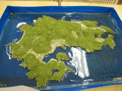 地図を等高線の通りに切り抜いて貼り重ねて作ったという力作です。