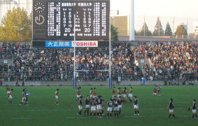 急いで秩父宮ラグビー場へ早慶戦を見に行きました。