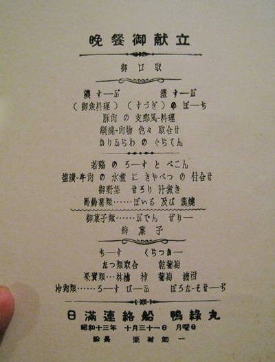 恐るべき貴重な資料(ホンモノのメニューです)が酔い席に登場しました。