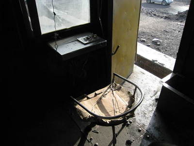 11:45 車掌?の席です。段ボールのクッションが敷かれたシートです。