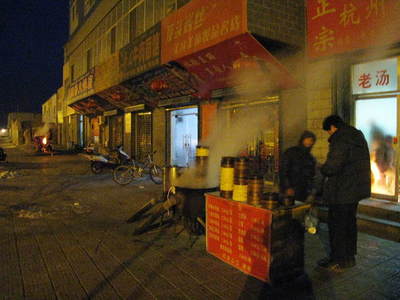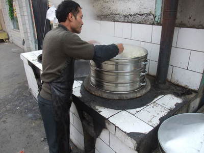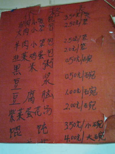 8:17 一番上のロバ肉まん3.5元、次の豚肉まん2.5元、羊肉まん2.5元、6番目の豆乳を頂きました。