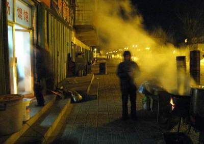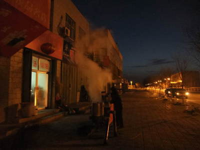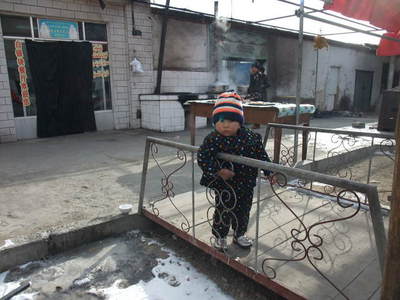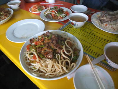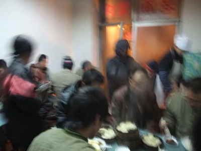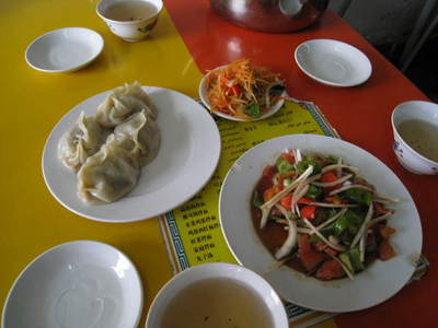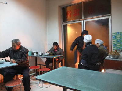 12:15 どうやらお昼休み状態になったようなので三道嶺の市街、また昨日のお店で昼食です。