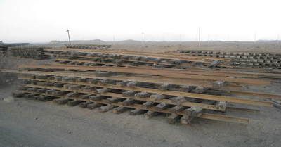 ズリ捨て線も、露天掘の中もまるで模型のOゲージガラレール(いや、Gゲージか・・・)のようにこの軌框を置いて繋げてあるだけです。