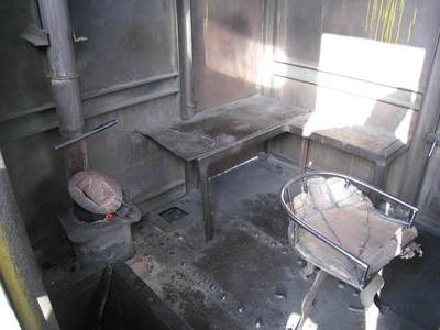11:10 西よりの客車の車内にはストーブが付いています。しかも石炭が燃えていました。