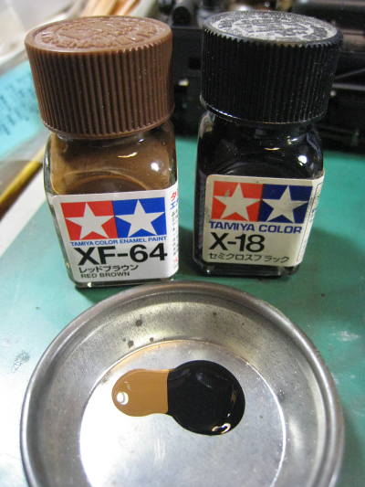 XF-18 セミグロスブラックとXF-64 レッドブラウンをこんな比率で混ぜます。