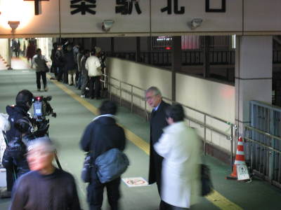 22:58 東十条駅を横断する陸橋上に布かれた「撮り鉄」の砲列をテレビカメラが狙っています。