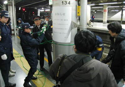 20:41 撮り鉄ホーム際排除作戦が発動されました。強制立ち退き開始です。