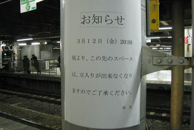 ホーム先端付近にはこの貼り紙があちこちに貼られています。
