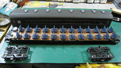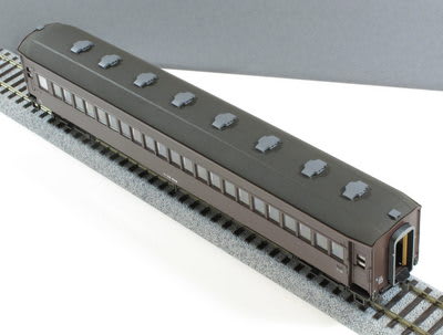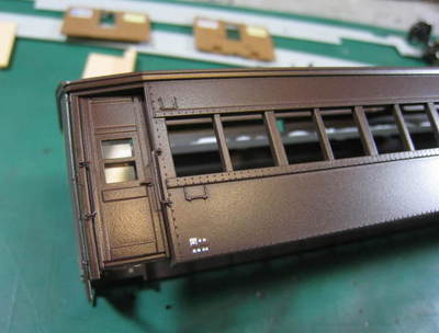 屋根と同色にしたベンチレーターの色、この色は残してこの客車を仕上げますが、ベンチレーターについても寒色系はいただけません。