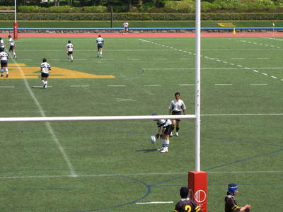 開始早々自慢のバックスが走り切り、いきなり5-0と先制します。 (ゴール失敗)