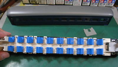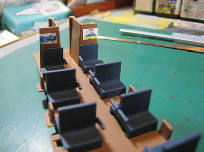恐るべき明るい色の床、Nゲージの室内一体内装に使われているABS成形材を流用した結果だと思います。