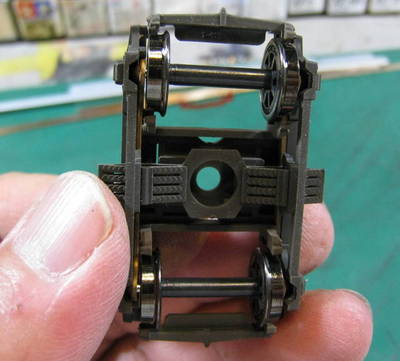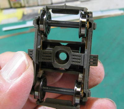 車輪から車体へ集電する優れた構造。天賞堂、アクラスも見習っていますが、コレの元祖が欧米客車モデルに有ったのかどうか???・・・・