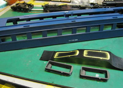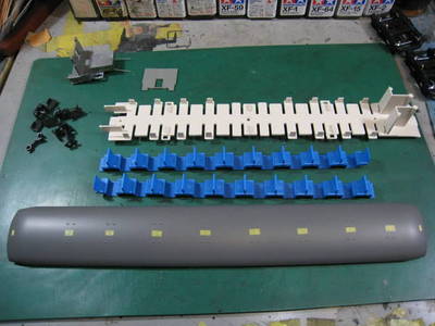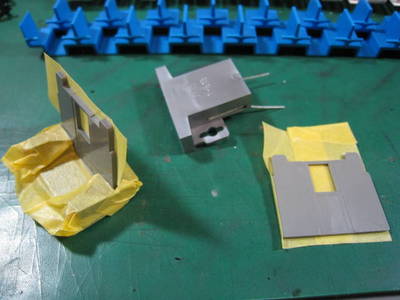 仕切り板も素っ気ない銀色っぽいグレーからイロっぽい色に塗るべくマスキングします。