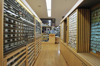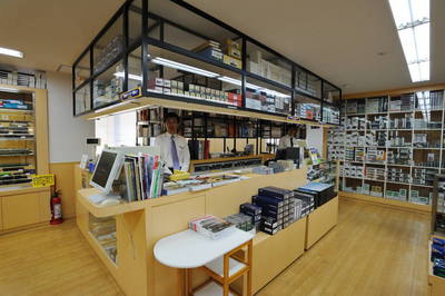 カウンターの内側の照明を落としてあるのは、印刷物は光を受けると褪色が烈しいからです。