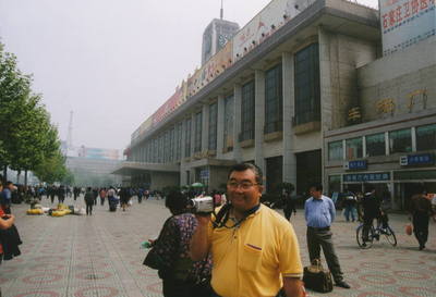 北京西站です。 写真左は同行を依頼しておいた中国青年旅行社の宗さんです。 三脚を持って貰っています。