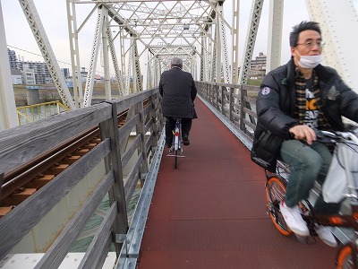 イモン先行で淀川を渡り東淀川へ向かいます。