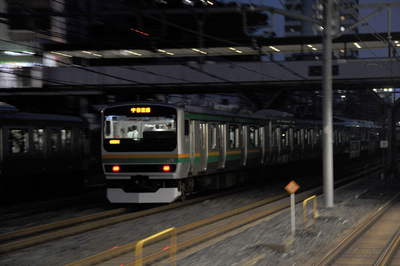 後続の宇都宮線電車が湘南新宿ライン経由高崎線直通と並走で来ました。