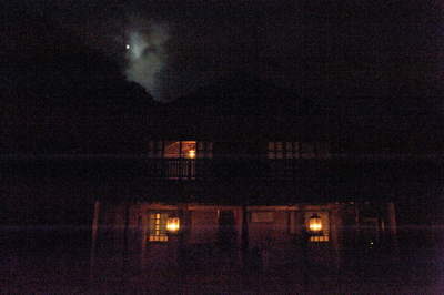 外から我々が宿泊する健六館の夜景撮影に挑戦してみます。