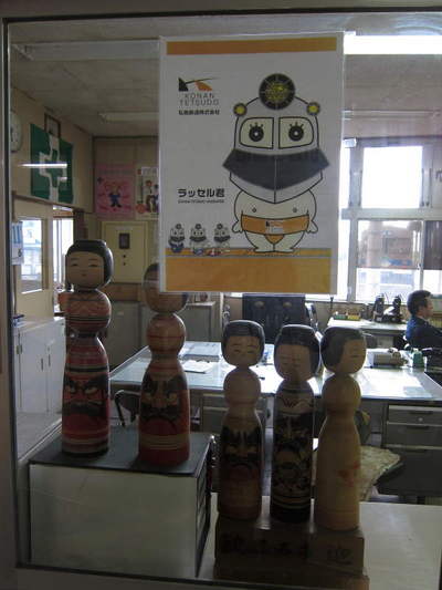 黒石駅裏口、電話ボックスが「雪国仕様」で階段付になっています。