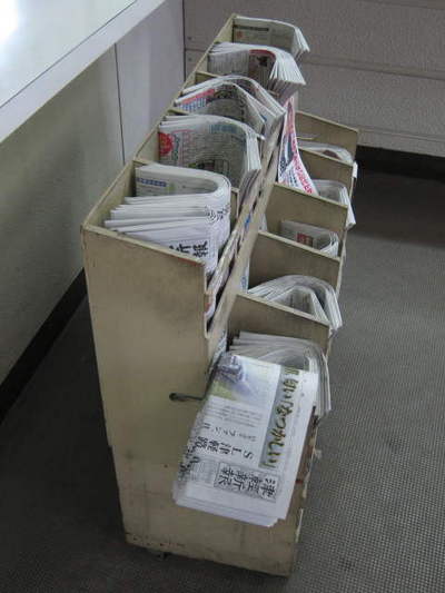 薄暗いのが特徴の‘ランプの宿’です。 帳場の奥の方のデスクだけが少し明るかったです。